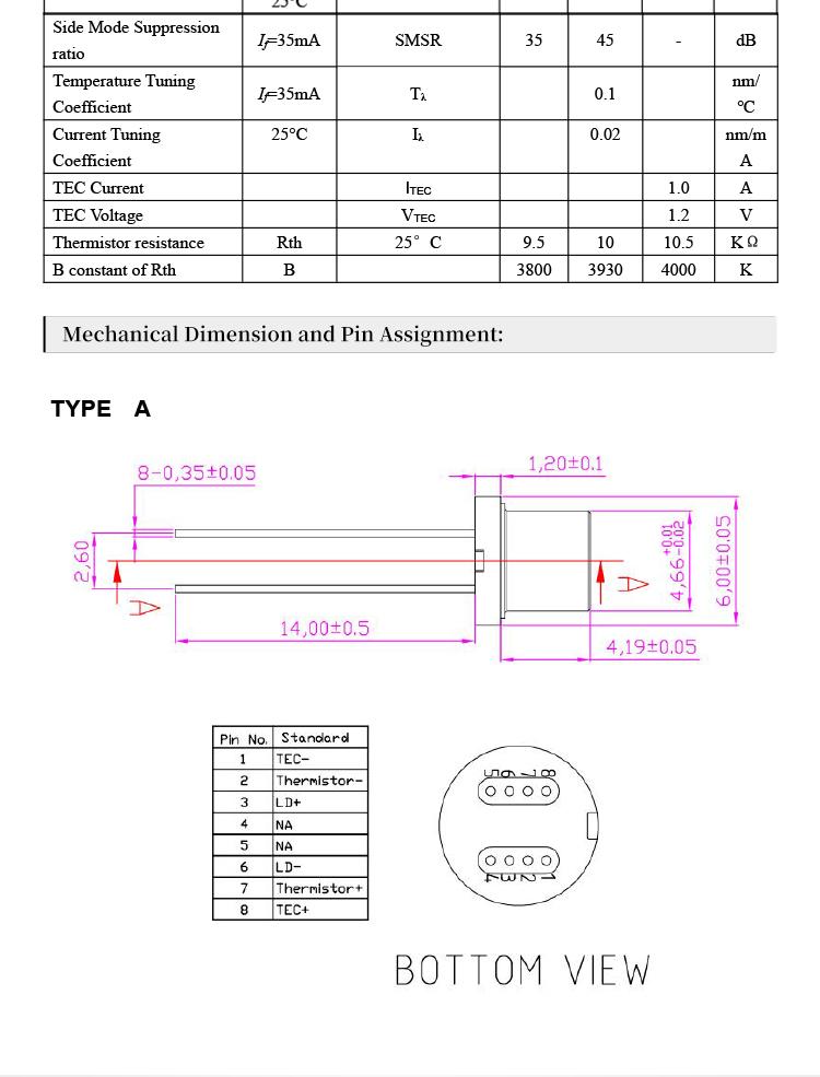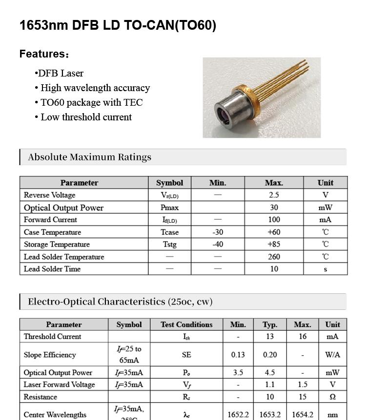 Subject : 1653nm DFB LD TO-CAN(TO60) CH4 gas sensor laser diode