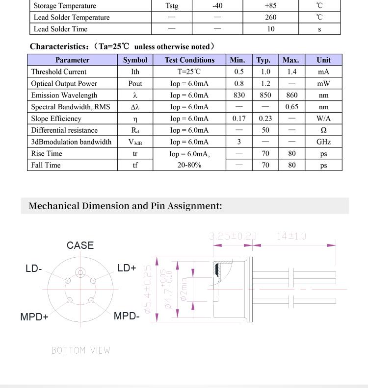 Subject : 2.5G 850nm VCSEL LD TO-CAN Series Laser diode
