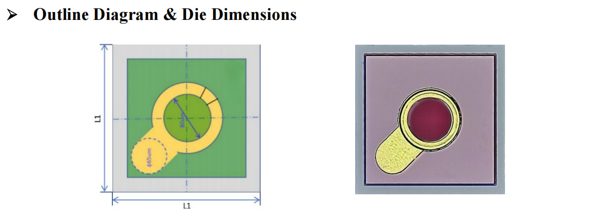 SAN-U Self-developed photodiode chip detector chip Φ80um InGaAs PD chip