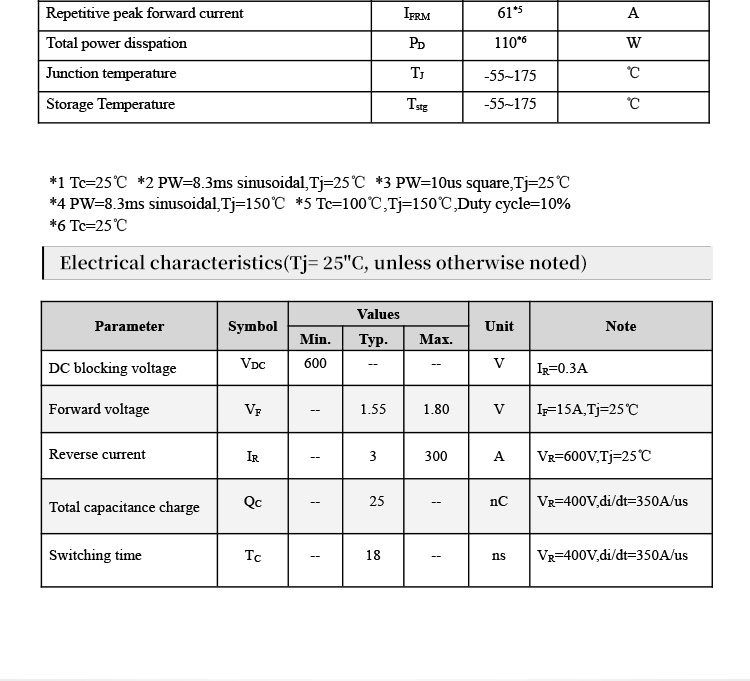 SiC Schottky diode SBD 650V 2~100A TO220 packaged high-voltage electronic components